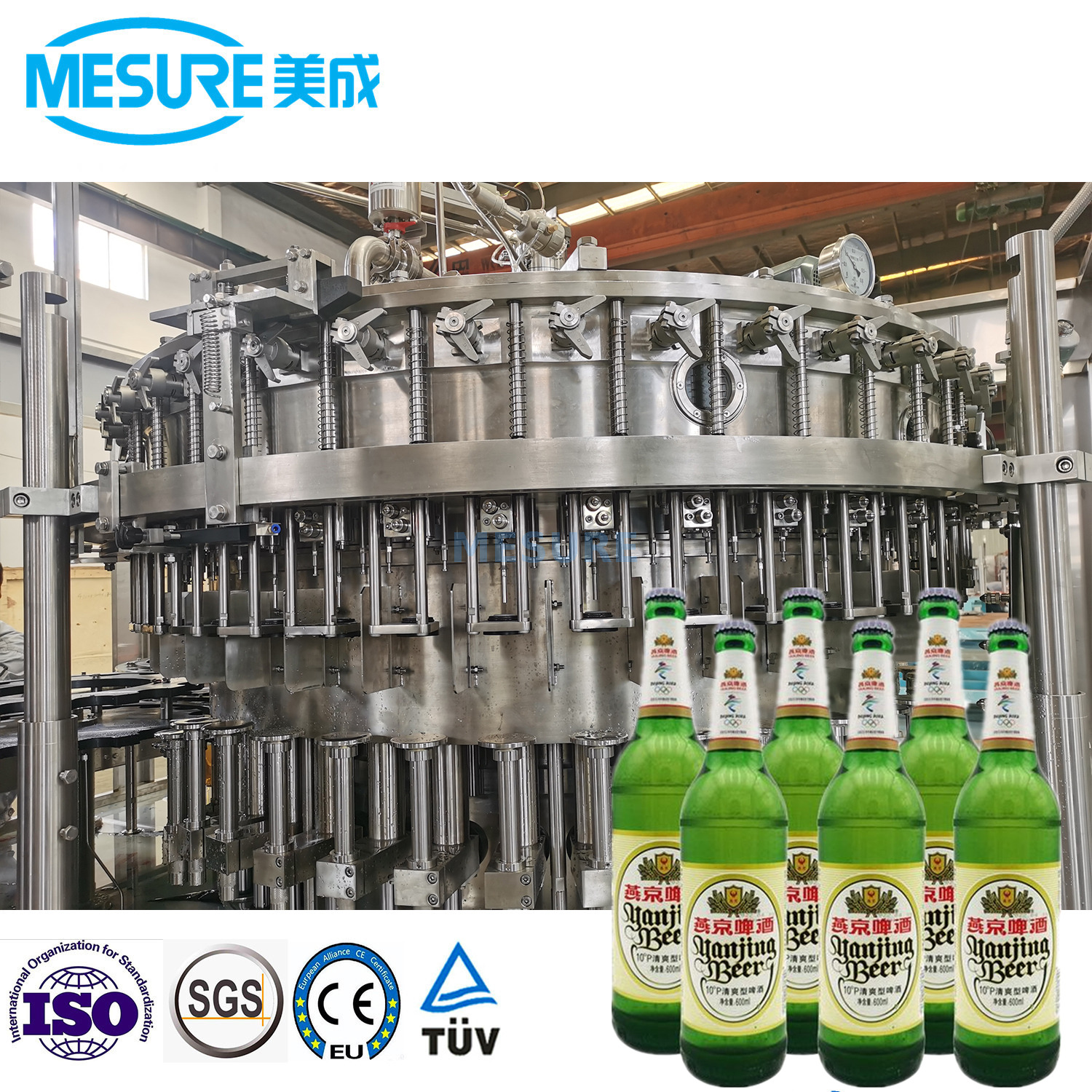 这台机器是我们公司推出的德国技术,再加上啤酒生产行业的特征,旨在开发啤酒填充设备。该机器具有出色的机械操作可靠性,提高冲洗,填充,盖子拧紧,消毒灭菌和其他功能